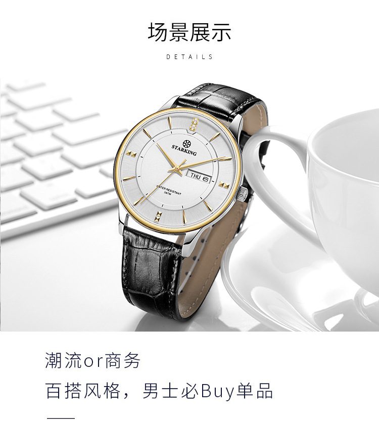 Men's electroplated gold white face ❤ Imported movement